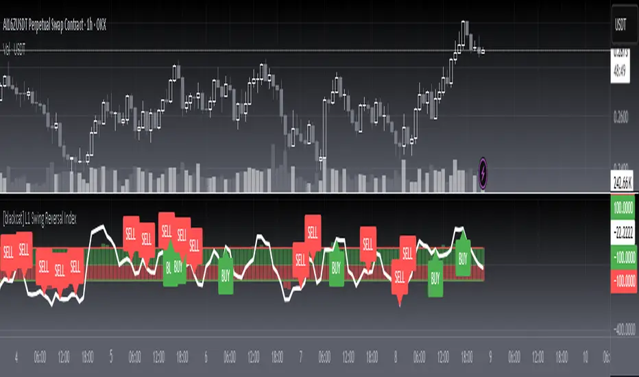 The [L1 Swing Reversal Index] indicator is crafted to assist traders in identifying potential swing reversal points within various markets 📈✨. This sophisticated tool combines elements from price deviations, smoothed moving averages, and relative strength indices (RSIs) to generate actionable trade signals, making it easier for users to spot lucrative entry/exit opportunities. By visualizing key market conditions through customizable plots and labels, this indicator simplifies complex analyses into straightforward decisions.