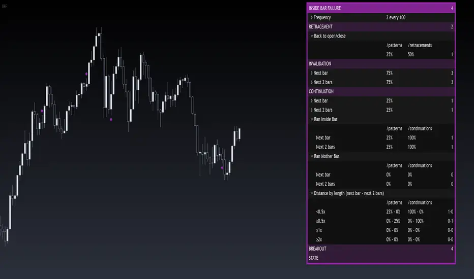 * Improved retracement back to open into back to open or close. E.g. on bullish inside bar failure whether the pattern closed with an up or down bar, it captures the retracement towards the lowest price between open or close.