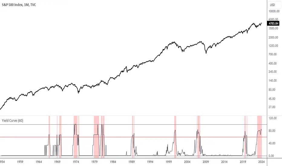 Yield Curve Percent Inverted IndicatorThis indicator checks all seventy-eight Treasury Bond Yield spreads - every combination from