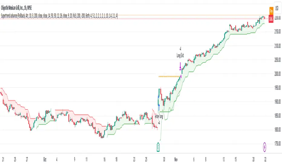 It's important to note that while the Supertrend Advance Strategy can be applied across various assets and markets, its effectiveness might vary based on market conditions, timeframe, and the specific characteristics of the asset in question. As always, it's recommended to use the strategy in conjunction with other analytical tools and to backtest its effectiveness in specific scenarios before committing to trades.