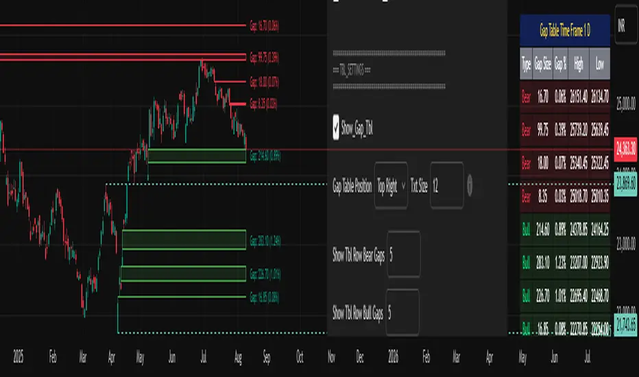 Bullish & Bearish Gap Boxes with Gap Points & Table Functionality 2025
