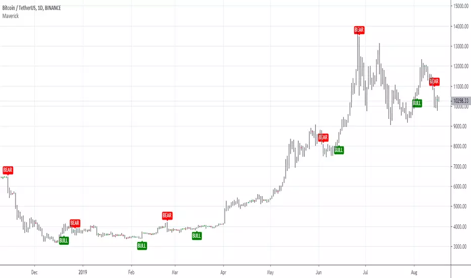 You can use the Maverick to scalp on low time frames such as the 5m, 15m, 30m etc. Or use the Maverick on higher time frames such as the 1hr, 2hr, 4hr.