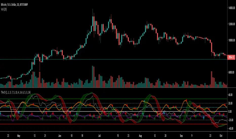 Purple line: The BTD(Buy the Dip) is a modified Version of the SMI. It should be used in Bull or Bearflags to time entries. Also the Horizontal lines can be used as Support or Resistance