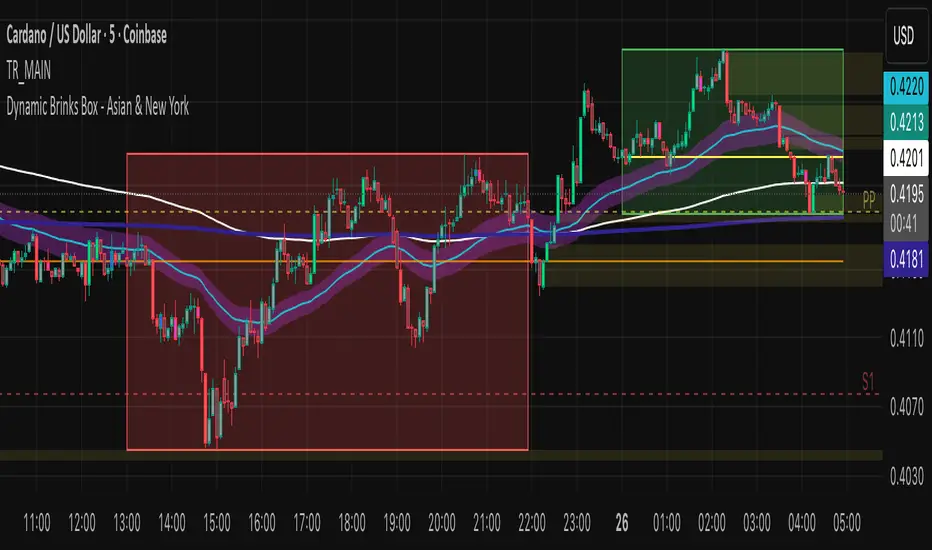 Instantly see session highs and lows with fully dynamic boxes for Asian (green) and New York (red) sessions. Boxes automatically grow to contain all candles in real time. Perfect for scalpers, day traders, and anyone who wants a clean, visual edge on any timeframe.