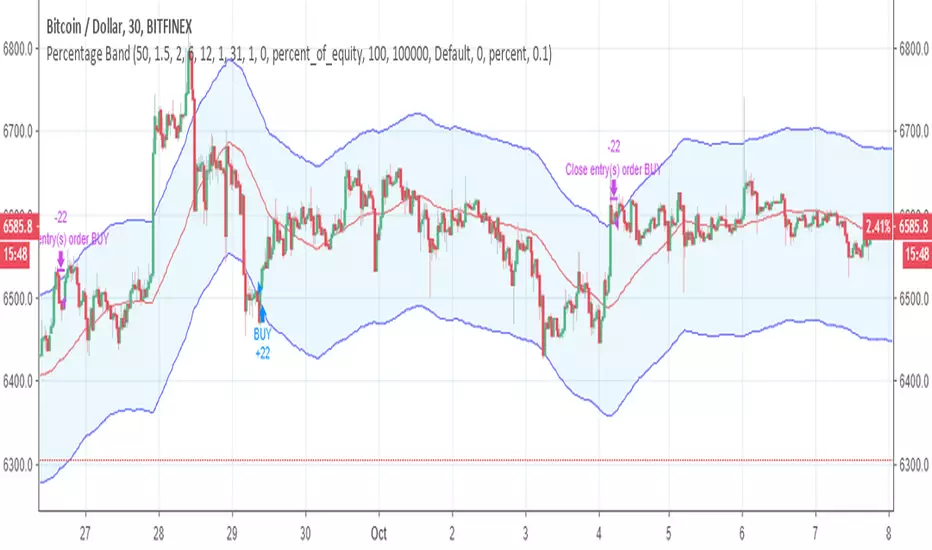 A different version of bollinger bands, I use percentage difference instead of standard deviation.