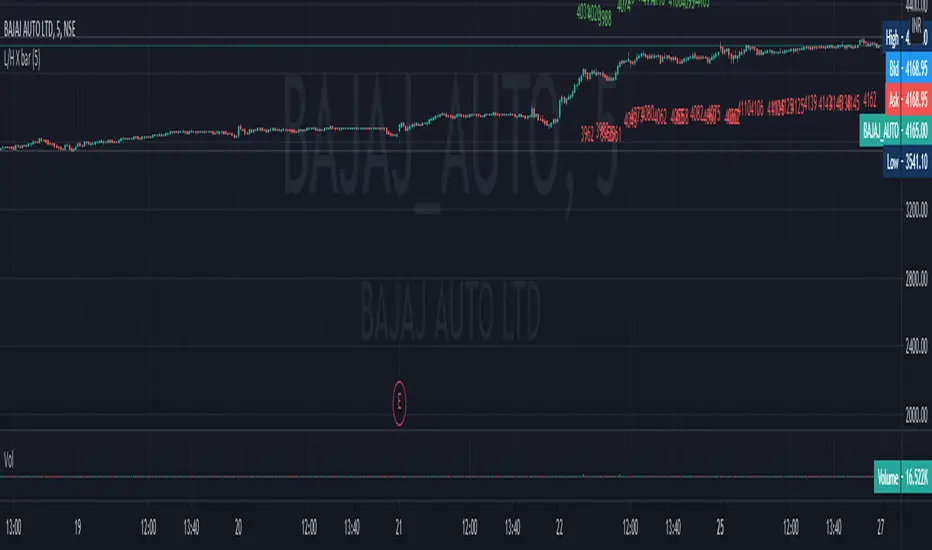 //This script finds High and Low X bars back. Simple pine script, can customize lookback period.