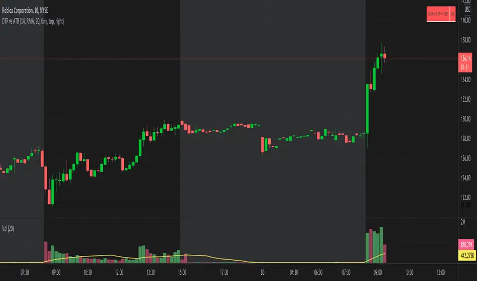 There was a mis-calculation on the script where if you change chart resolution, the RVol changes. But the intention of this script is, both DTR vs ATR value and RVol should be same for the day whether you're on 1Hr chart or 3min chart or Daily chart. The idea is, we want to see what is today's DTR vs ATR and what is today's Relative Volume. Note di rilascio
