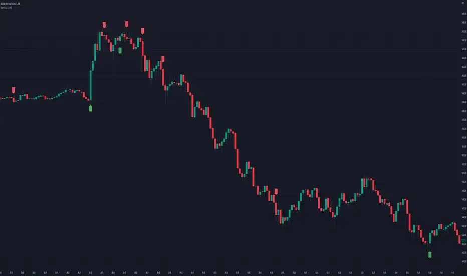 Each time a 'Buy' or 'Sell' condition is met, the script plots a corresponding label directly on the price chart: a 'Buy' label below the bars for buy signals, and a 'Sell' label above the bars for sell signals. Additionally, it sets alerts based on these 'Buy' and 'Sell' signals with corresponding messages.