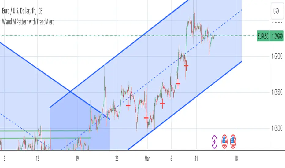 This script detects W and M patterns in price action and alerts the trader when these patterns occur, providing potential trading opportunities.