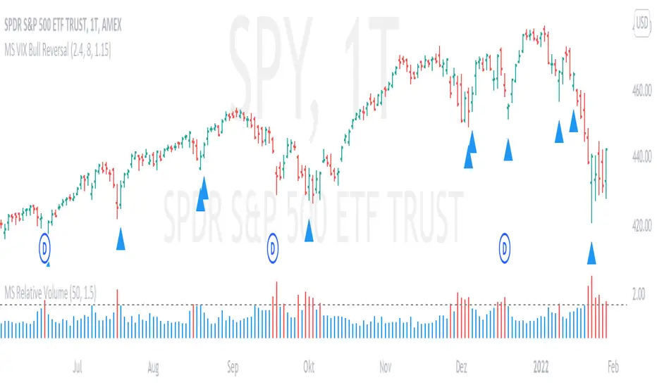 This script measures the rebound of the implied volatility of the S&P 500 index options from an excessive panic zone. The IV starts a reversion to the mean as soon as profit taking from the hedge begins. The assumption behind it: this rebound indicates at least the beginning of a countermovement, in uptrends the end of the correction and the trend continuation.