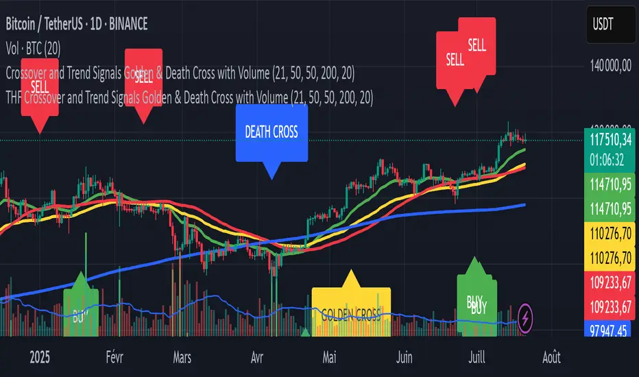 Aggiornato THF Crossover and Trend Signals Golden & Death Cross with Volume