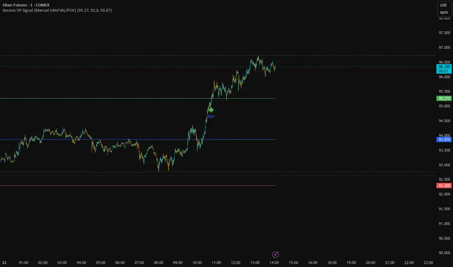 This indicator provides trade signals based on key levels from the previous day's Volume Profile: