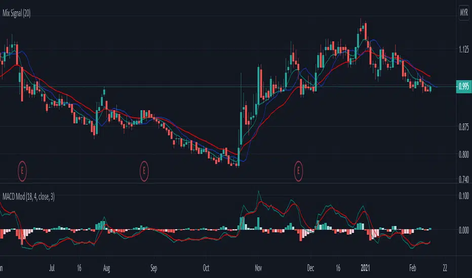 -1 indikator MACD yang sudah diubahsuai supaya boleh mengesan pergerakan awal harga akan turun atau naik.