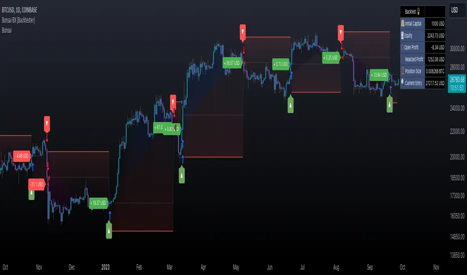 • Source Signals: The Bonsai indicator signals are employed for both long and short entries. These are directly visible on the publication chart.