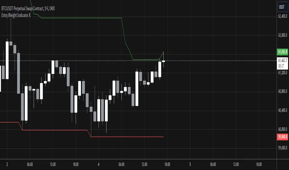 This indicator is a tool that helps traders dynamically determine their entry weight. It calculates and displays two different entry weights based on the closing price of the previous candle.