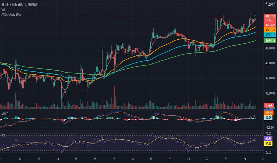 This indicator Have EMA 9/50/99/200 . You can edit number and I add parabolic SAR And Auto Fib Retracement. if don't want to use you can close