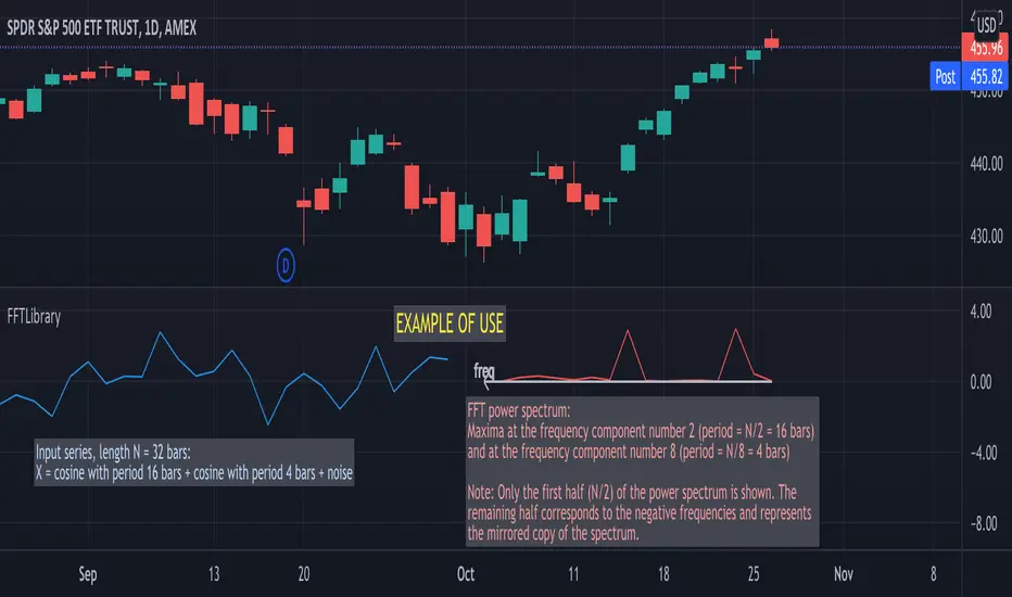 fft(x, y, dir) : Computes the one-dimensional discrete Fourier transform using an [url=paulbourke.net/miscellaneous/dft/ ]in-place complex-to-complex FFT algorithm. Note: The transform also produces a mirror copy of the frequency components, which correspond to the signal's negative frequencies.