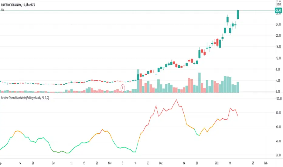 This is not same as Bollinger Percent B - which is measure of where price is with respect to band. Instead this indicator is similar to ATR Percent indicator published here: