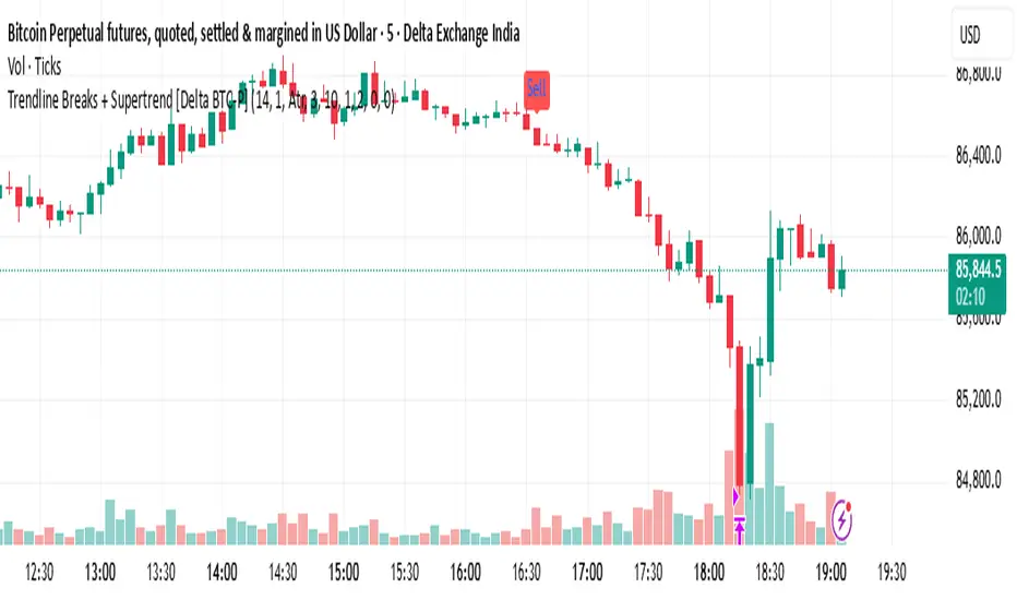 Trendline Breaks + Supertrend [Delta BTC-P]
