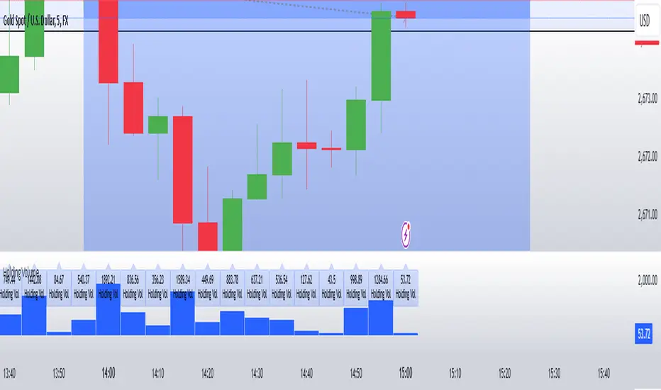 Volume Calculation: The indicator calculates the holding volume by taking the ratio of the candle's body range to its total range (including the wicks), and then multiplies that by the total volume of the candle.