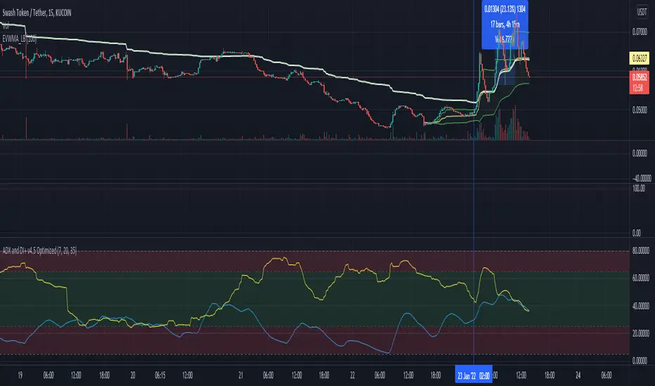 This script plots VWMA(ADX) vs EMA(DI+) under pre-set time frame.