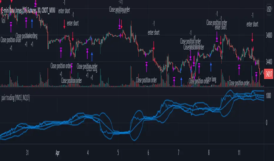 Theory: It is based on something called cointegrated. Cointegration means the difference between 2 securities are stable in long term. When the difference is bigger / smaller than normal, then there is space to make profit. You can use some tests to check if they are cointegration. I don't think YM and NQ are strictly cointegrated. I used other platform to test the cointegration. They are not cointegrated. There are multiple ways to do pair trading. I use "Y = A - B * (A /B)" to do this. The back test on tradingview can only trade one security. This is not pair trading in this backtest. But only do long and short based on the theory of pair trading. The max drawdown is huge. You should be careful before doing anything with this strategy.