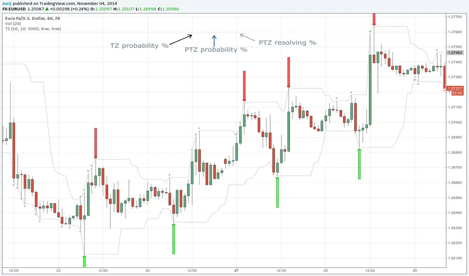 Simple indicator to visualize Transient Zones (TZ) and Potential Transient Zones (PTZ).