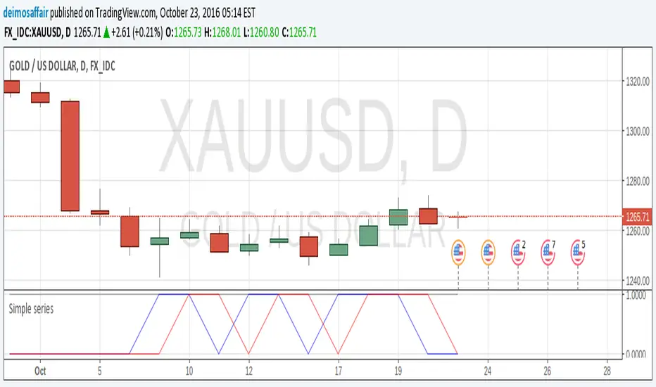 This gives the expected result, a tipical up and down line with values at 1 or 0. Naturally, "tipicalSeries" is an array, the "ups" and "downs" are all stored under the same variable, indexed by the candles.