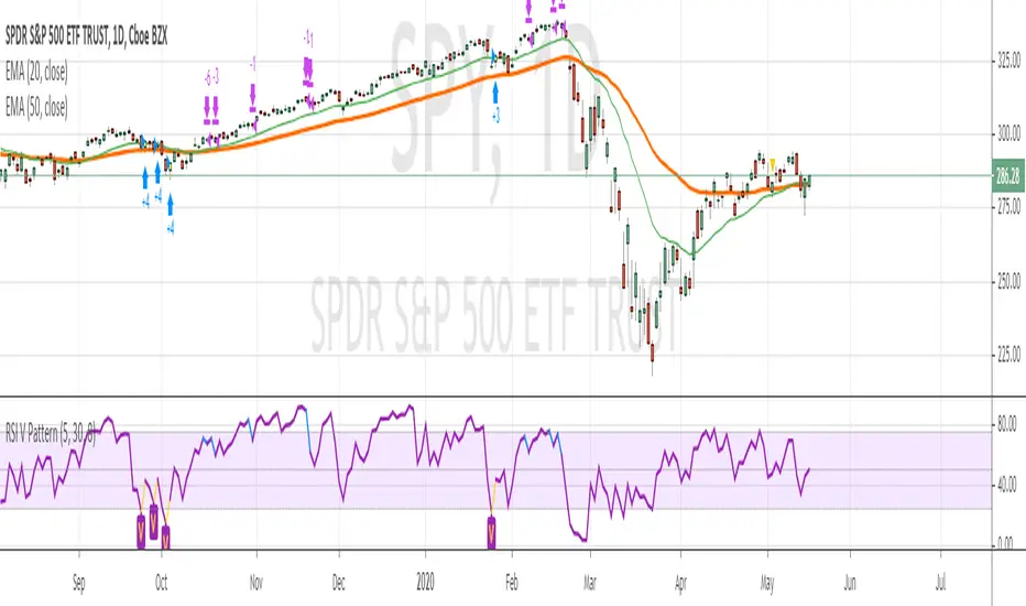 above which makes a V shape on RSI indicator, colored in yellow on the chart , price bar is colored in yellow