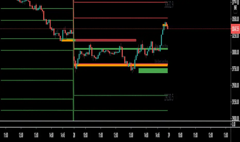 In the example above, I have specified the most immediate support and resistance zones on Bank nifty and set the script to detect price action. If a price action occurs within the resistance zone a signal will be generated; likewise for price action within the support zone .