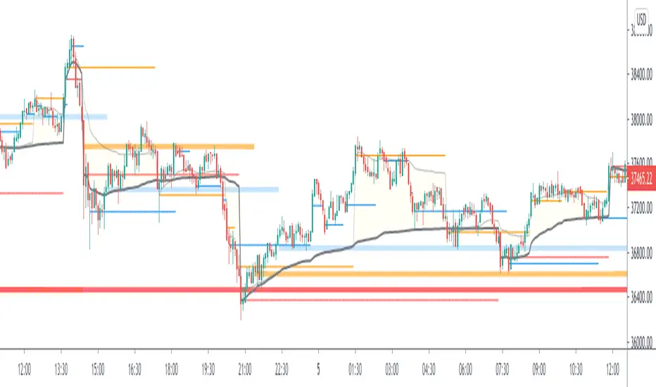 Dynamic VWAP is calculated from the points where volume crosses current Time Frame 2sigma and 3sigma Levels