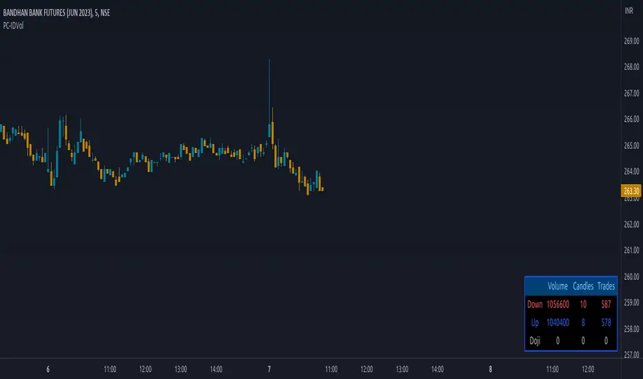 So, this script, displays volume, number of candles and trades on intra-day time-frames.