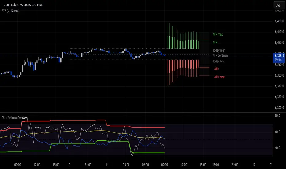 This script visualizes ATR values as candles to the right of the last candle at today's high and today's low.