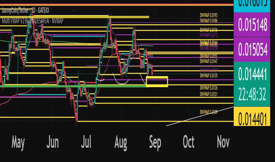 This indicator displays Volume Weighted Average Price (VWAP) across multiple timeframes simultaneously, with historical "naked" levels that persist as support/resistance zones.