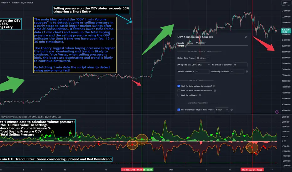 In the vast realm of trading strategies, few terms evoke as much intrigue as the word "squeeze." It conjures images of pent-up energy, ready to burst forth in a sudden and decisive move. In this blog post, we'll delve into a new trading idea titled the "OBV 1-Minute Volume Squeeze" which aims to catch bigger market movements by fetching 1 minute OBV data on higher time charts.