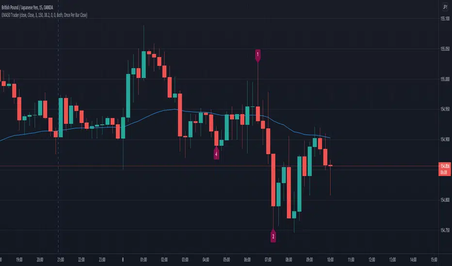 The EMA Trader locate EMA 50 Trades based upon an ABC wave with predicted target (4) known as D. The Trader let you set your own Fibonacci level. You can set whatever a EMA 50 break should be close price or high/low price (wick/body scenario). The EMA Trader is a tool to help you get alerts when a setup may suitable for you. You only need to setup one alert per asset, and timeframe. The tool will also set different colors on repeating same trades who may be nested for easier reading. You can select what color you want on badge and text as well.