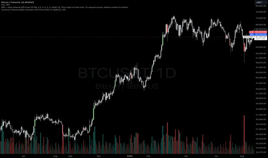 Indicator Name: Common Volume Spike Indicator with Price Color on Spike