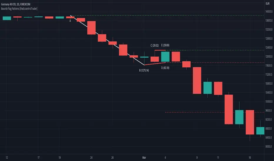 This indicator automatically draws bearish flag patterns and price projections derived from the ranges that constitute the patterns.