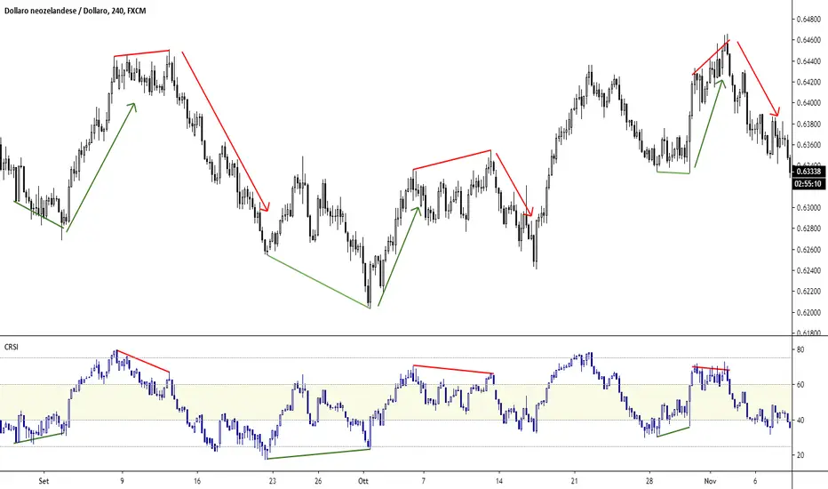 Simple RSI with candles, to have a complete view of the price and the divergences.