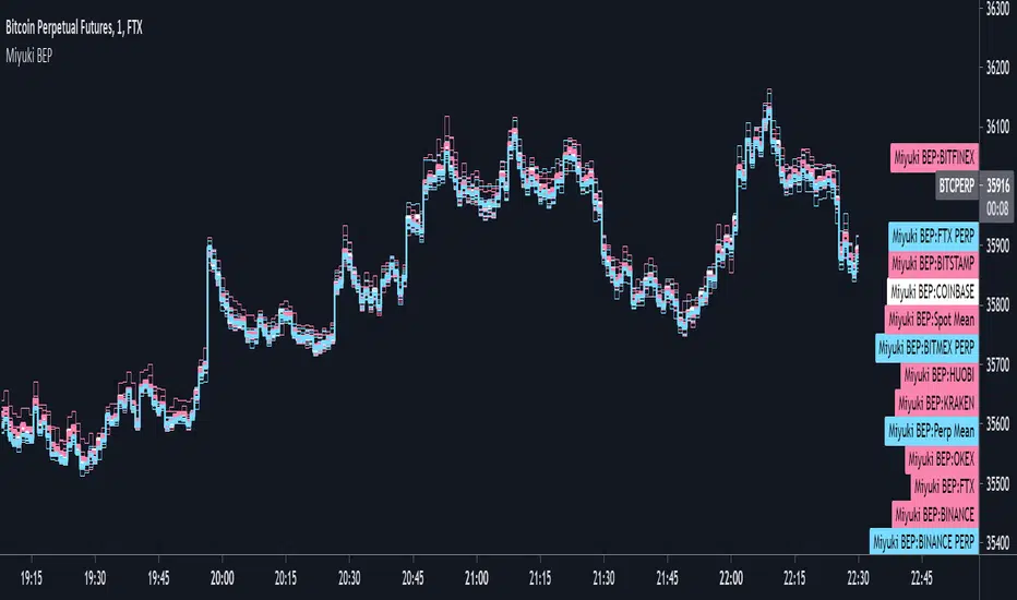 This is a simple indicator to display the difference between different BTC exchanges on the chart. It works similarly to my BTC Spot Perp Delta indicator.