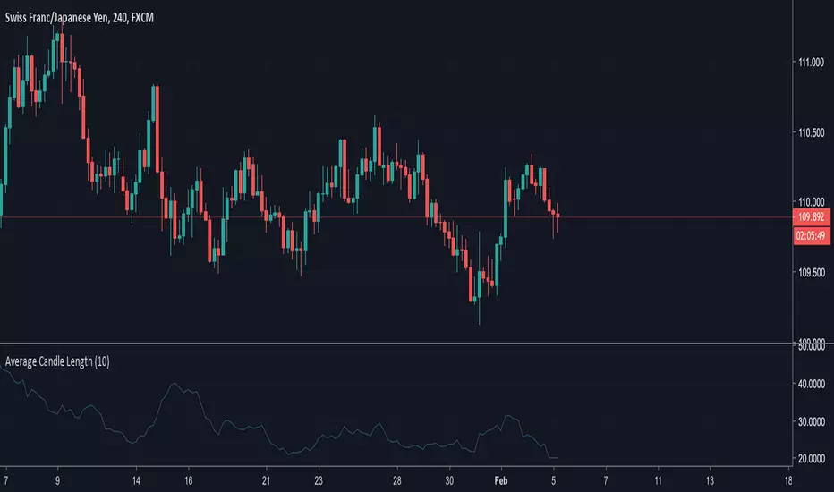 This script is designed to show you the average candle size in pips (wick to wick) for however many bars you choose (20 is default).