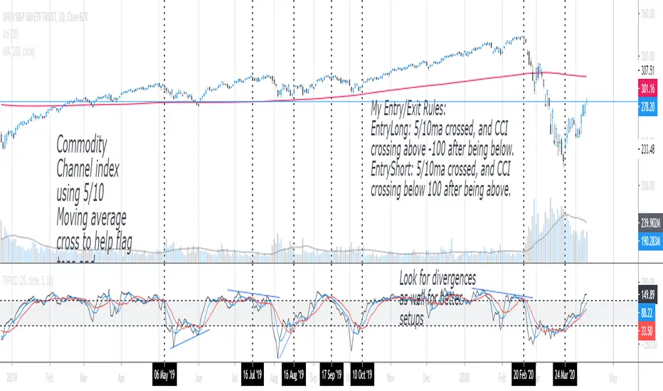 This indicator plots moving averages along CCI. This can help Identify trend and divergences in a smoother and less erratic way.