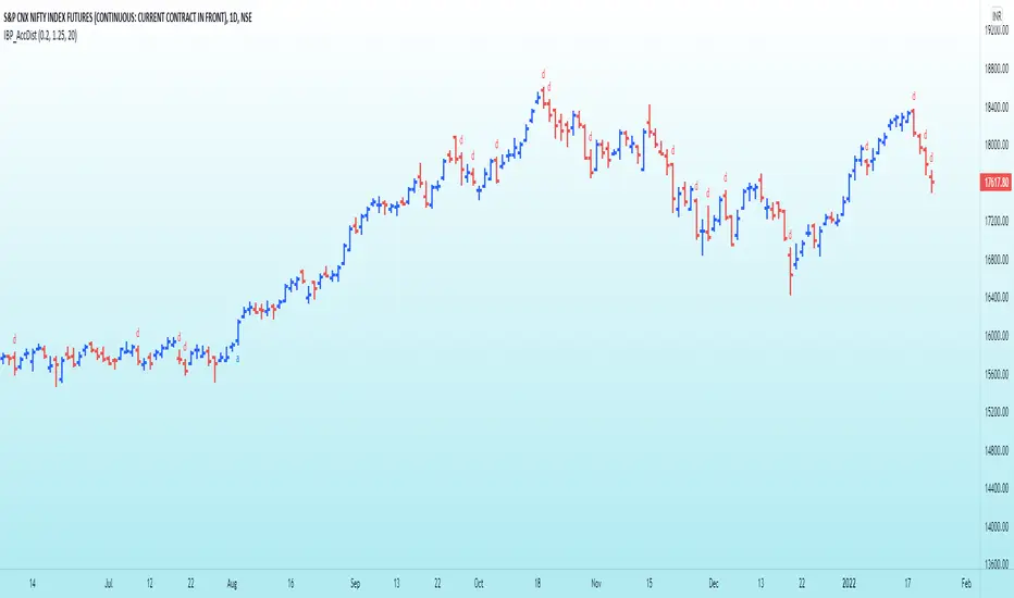 Distribution is when price falls by 0.2% and volume is 1.25 times the 20 day average volume.