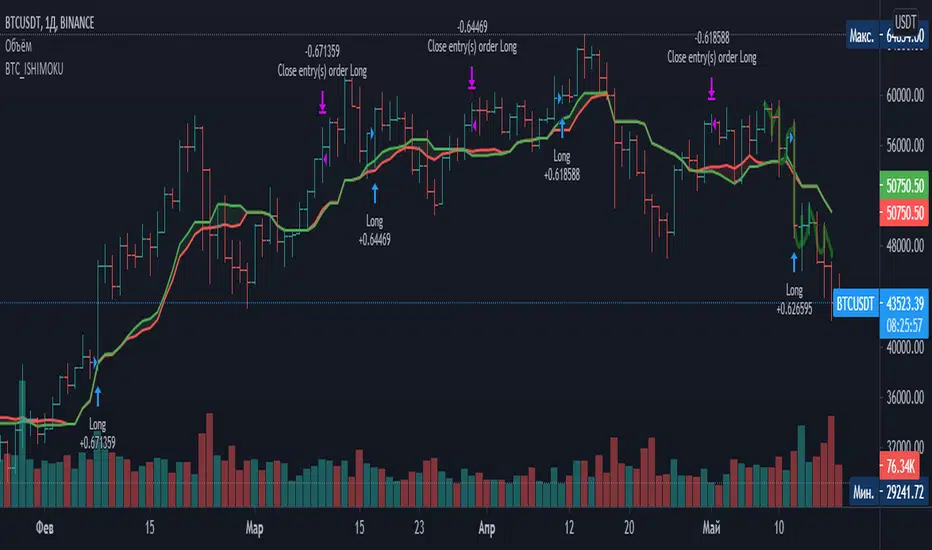 Investment trading strategy on the daily timeframe of the BTC-USD pair based on the Ichimoku cloud indicator
