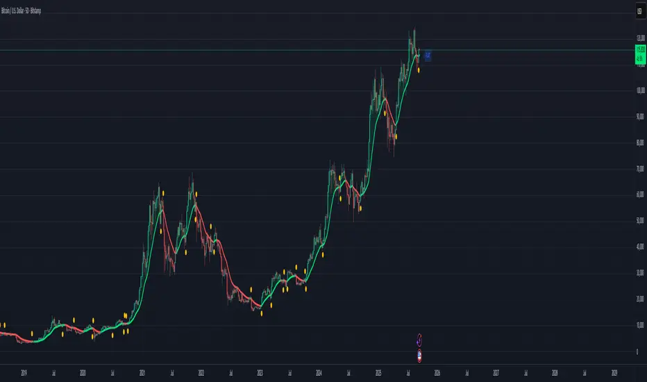 Creates an ultra-smooth trend wave that flows through price action, instantly revealing market direction and momentum strength through elegant visual design. The wave dynamically adapts its color intensity based on trend strength, making it easy to spot high-probability trading opportunities.