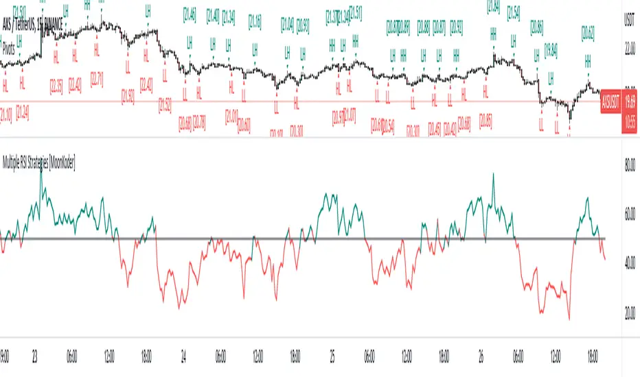Here you have multiple RSI Strategies in only one indicator. The tool tips are self explenatory, so you don't have to worry to kon how to work with it.