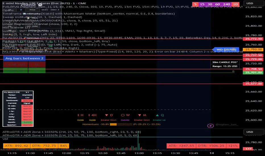 This indicator helps identify high-range (≥300-point) days on Nasdaq-100 futures (NQ / MNQ) using a clear, rule-based checklist.