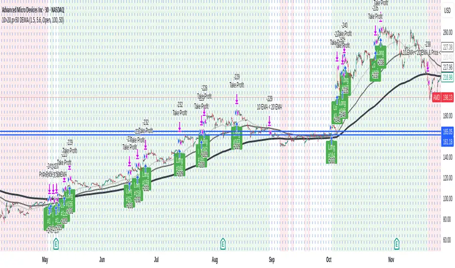 Renders daily EMA, 10, 20 and 50 on any timeframe below 1D