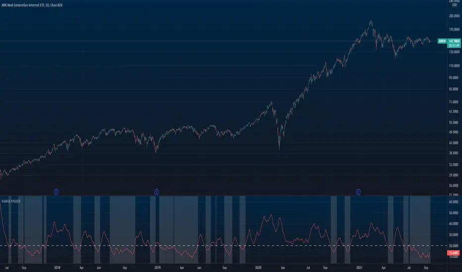 I made this indicator to be used in combination with other trading indicators to eventually be used to identify when a market is range-bound/sideways.