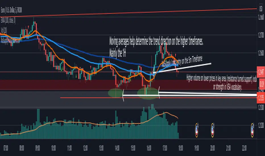 This indicator is mainly used in a VSA (Volume Spread Analysis) based strategy, it shows NoSupply and NoDemand confirmations (and sends alerts if needed), which are triggers to enter a trade in some VSA based strategies.